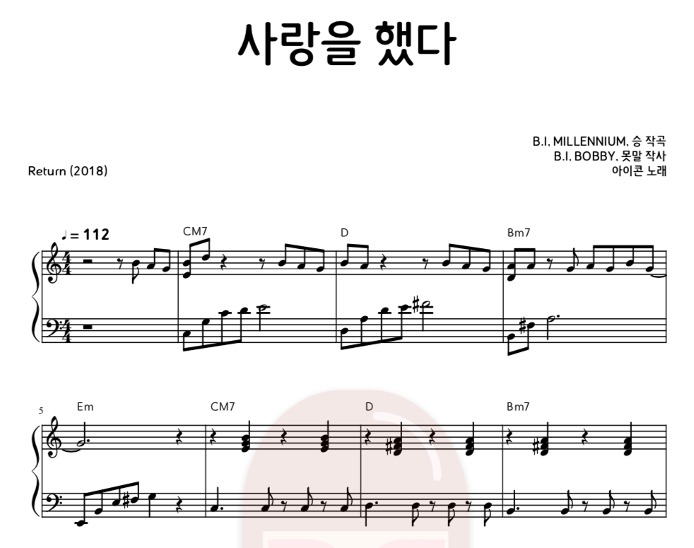 [반주악보] 아이콘 (IKON) - 사랑을 했다 (LOVE SCENARIO)