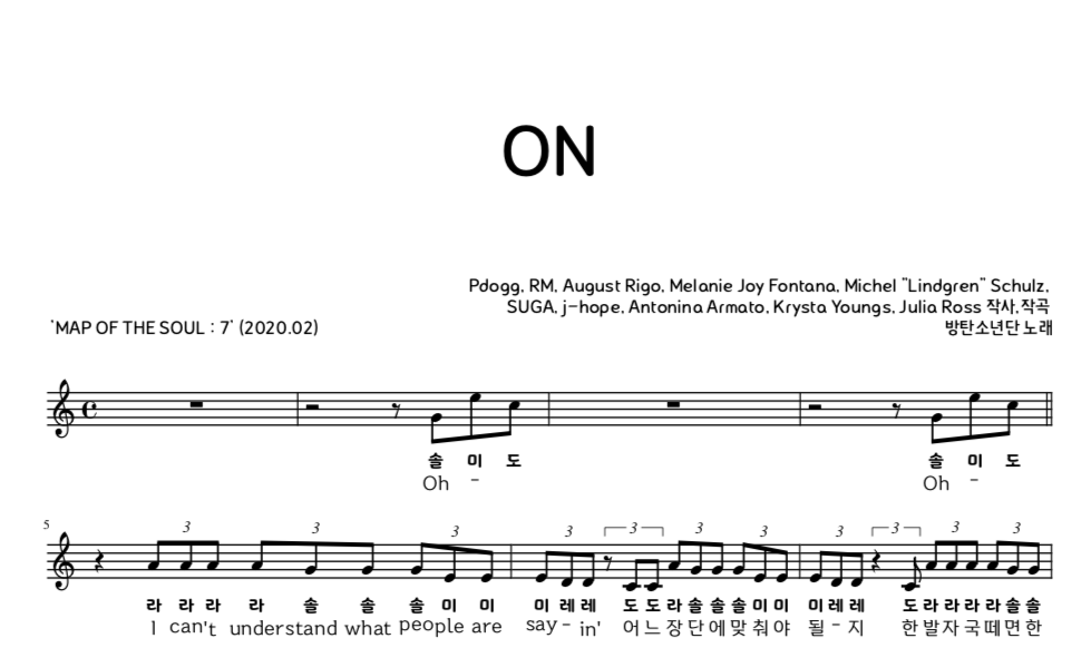 방탄소년단 BTS ON 악보 계이름
