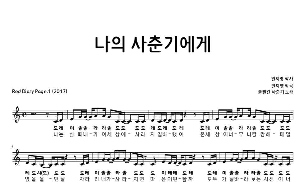 볼빨간 사춘기 나의사춘기에게 악보 계이름