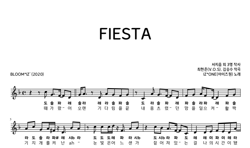 아이즈원 피에스타 FIESTA IZ*ONE 악보 계이름