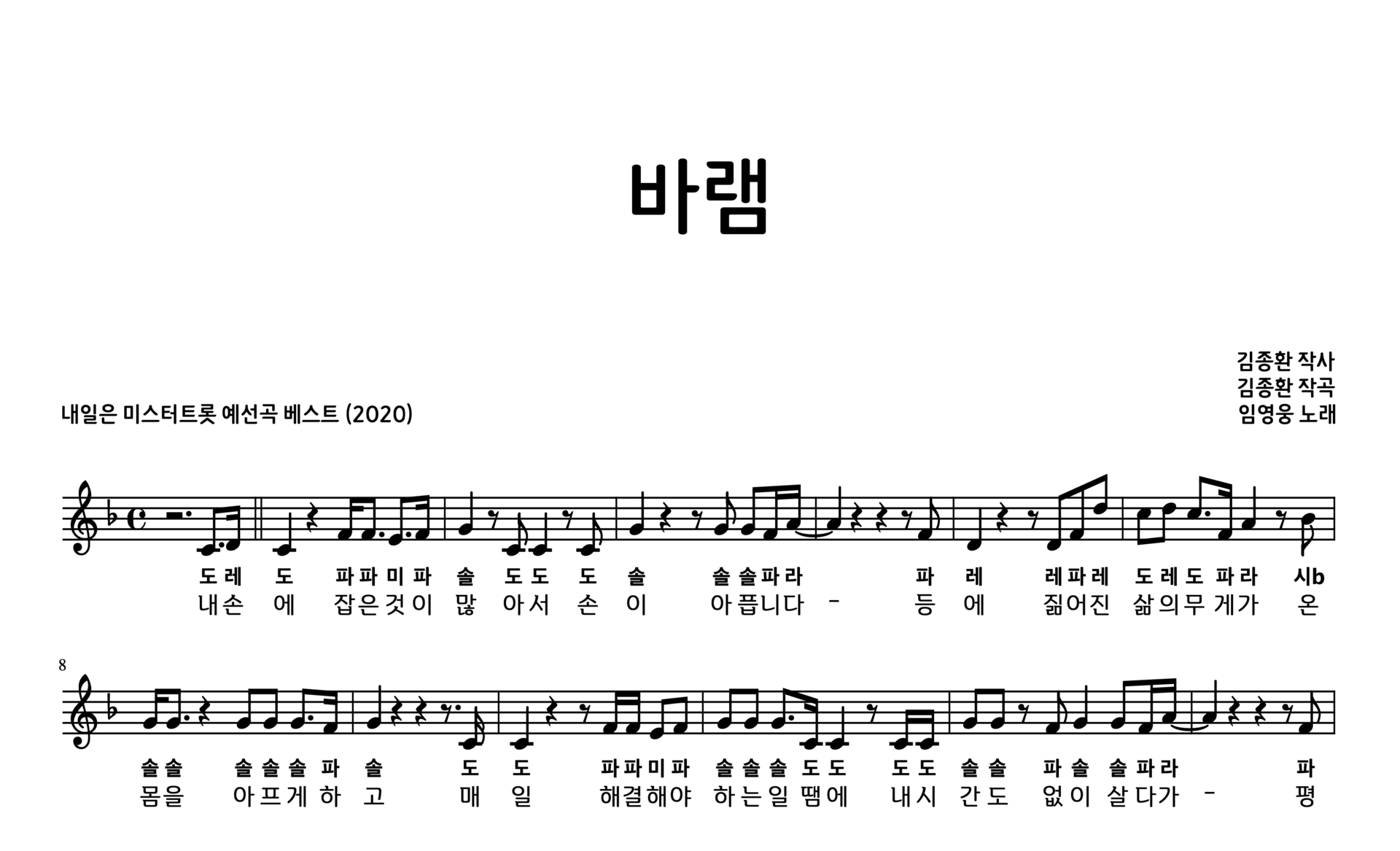 바램 악보 계이름