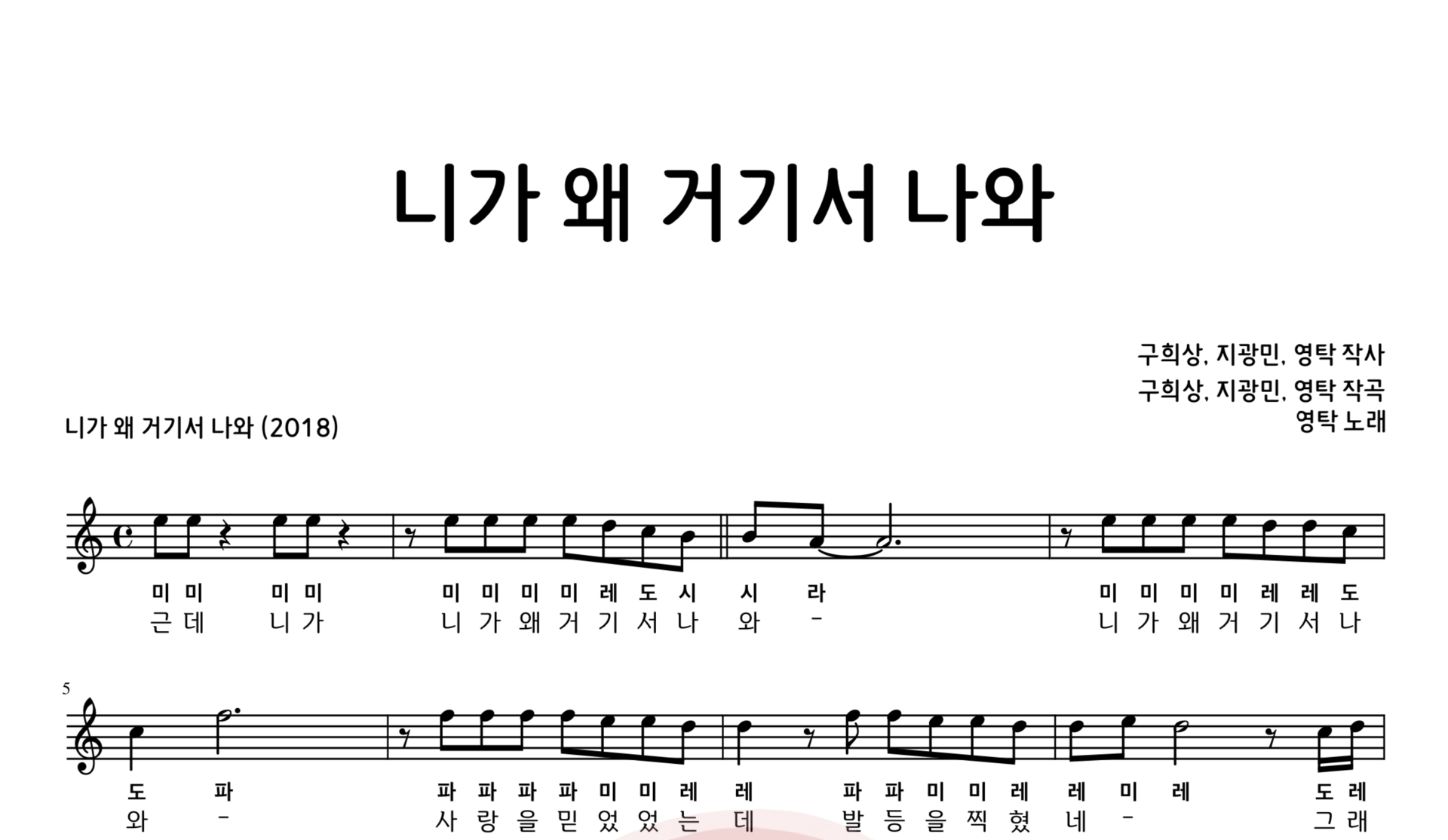 영탁 - 니가 왜 거기서 나와 악보 계이름