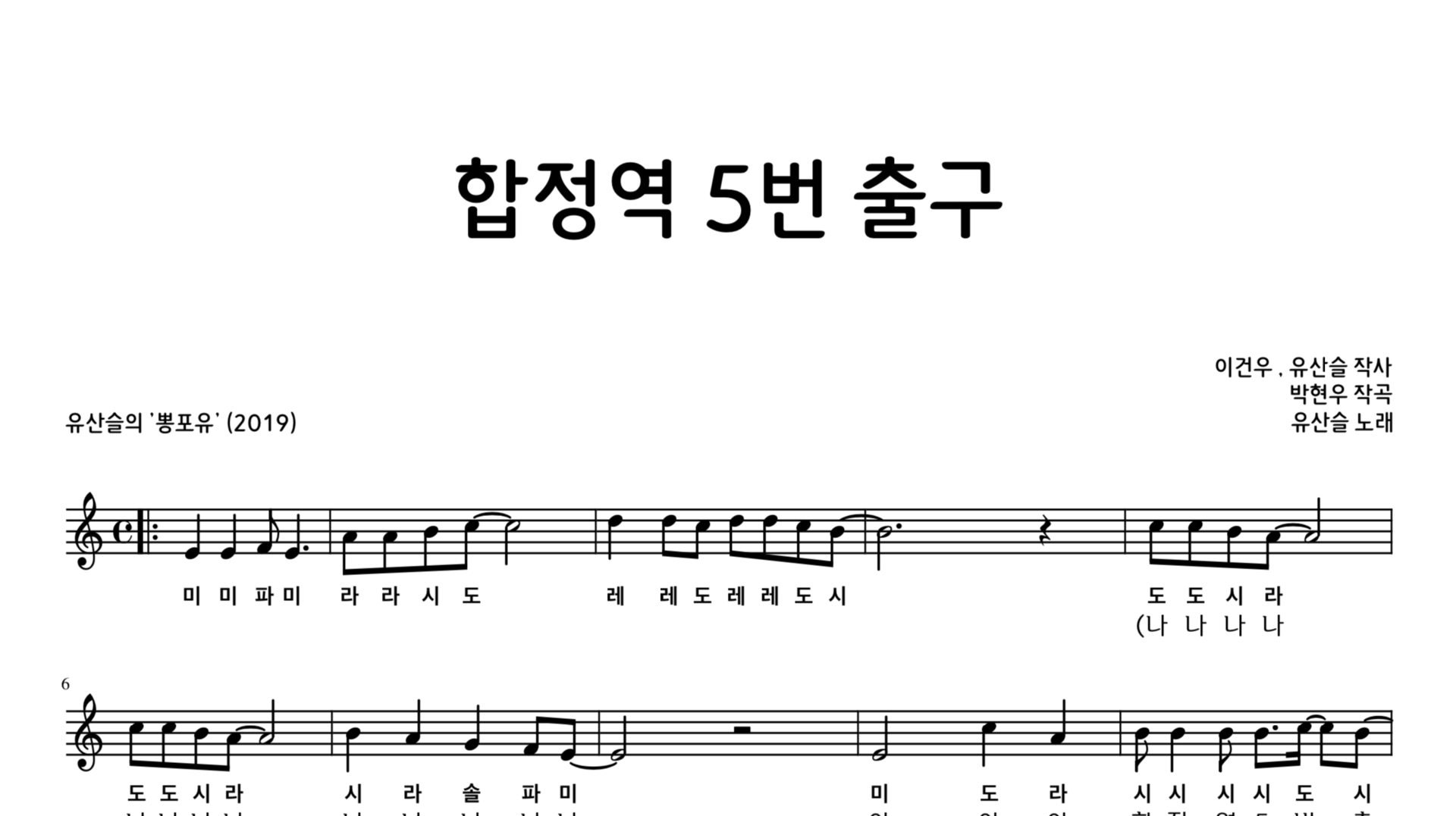 유산슬 - 합정역 5번 출구 (뽕포유) 악보 계이름